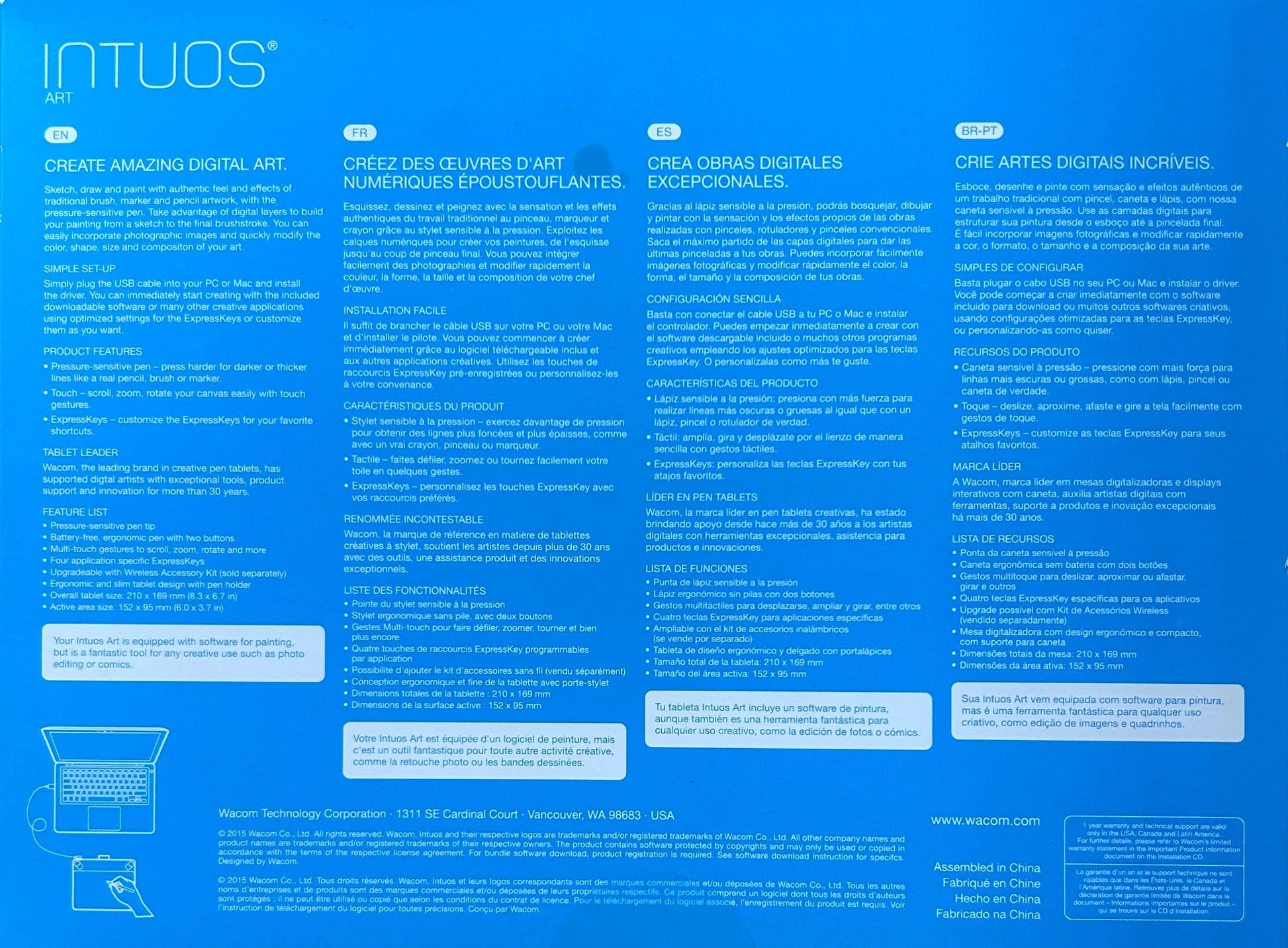 Wacom Intuos Art CTH490AK Graphics Tablet (Small) Graphics Tablet - 5.98" x 3.74" - 2540 lpi Cable - Pen - USB